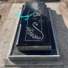 در نمونه بالا سنگ قبر مرمر آبی آسمانی همراه یا دو دست قرنیز زیرکار و دو دست قاب که یکی از آنها طرح دار است و همچنین بالاسری با عکس رنگی از جنس کریستال کار شده است.